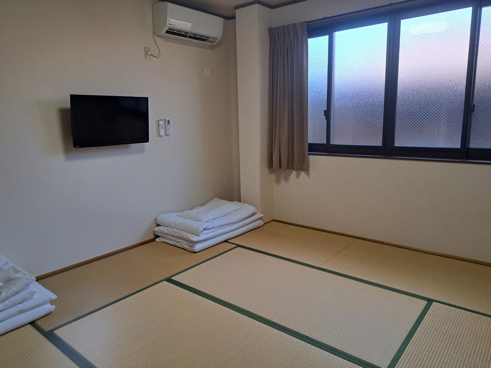 Pavimento di tatami, materassine impilate nell’angolo per prepararsi il letto, una piccola rientranza lungo tutta la parente, in cui appendere abiti. E nulla più.